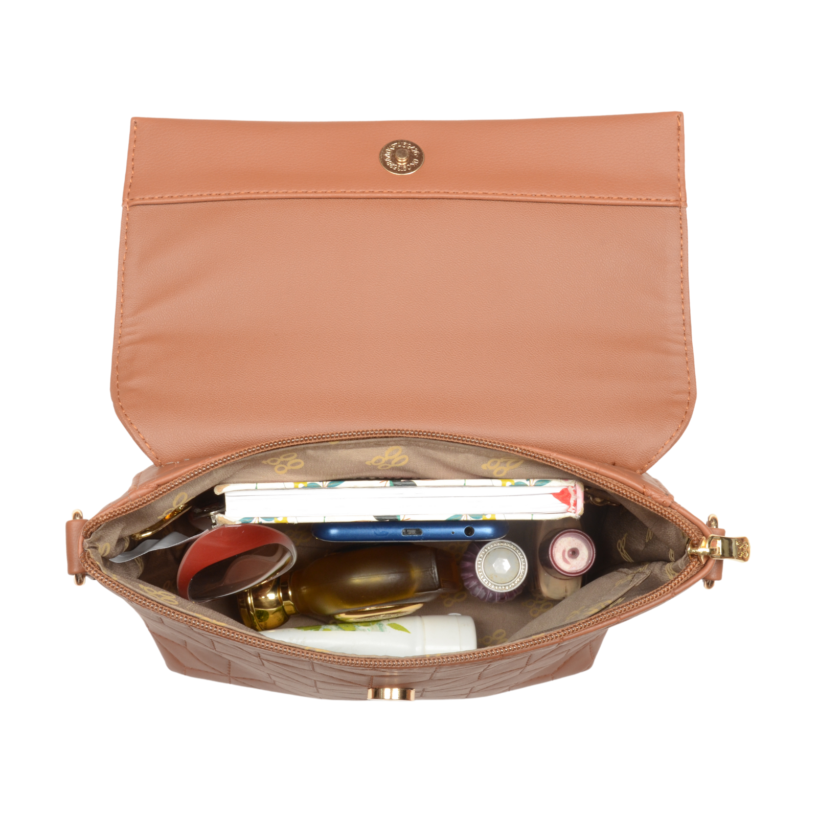 The Satchel Sling Bag in a rich tan exterior exudes timeless elegance and versatility. Perfect for those who appreciate both style and functionality, this structured bag is designed to keep your essentials organized while offering a chic, sophisticated look. Whether for work or weekend outings, it’s a practical yet fashionable addition to your collection.